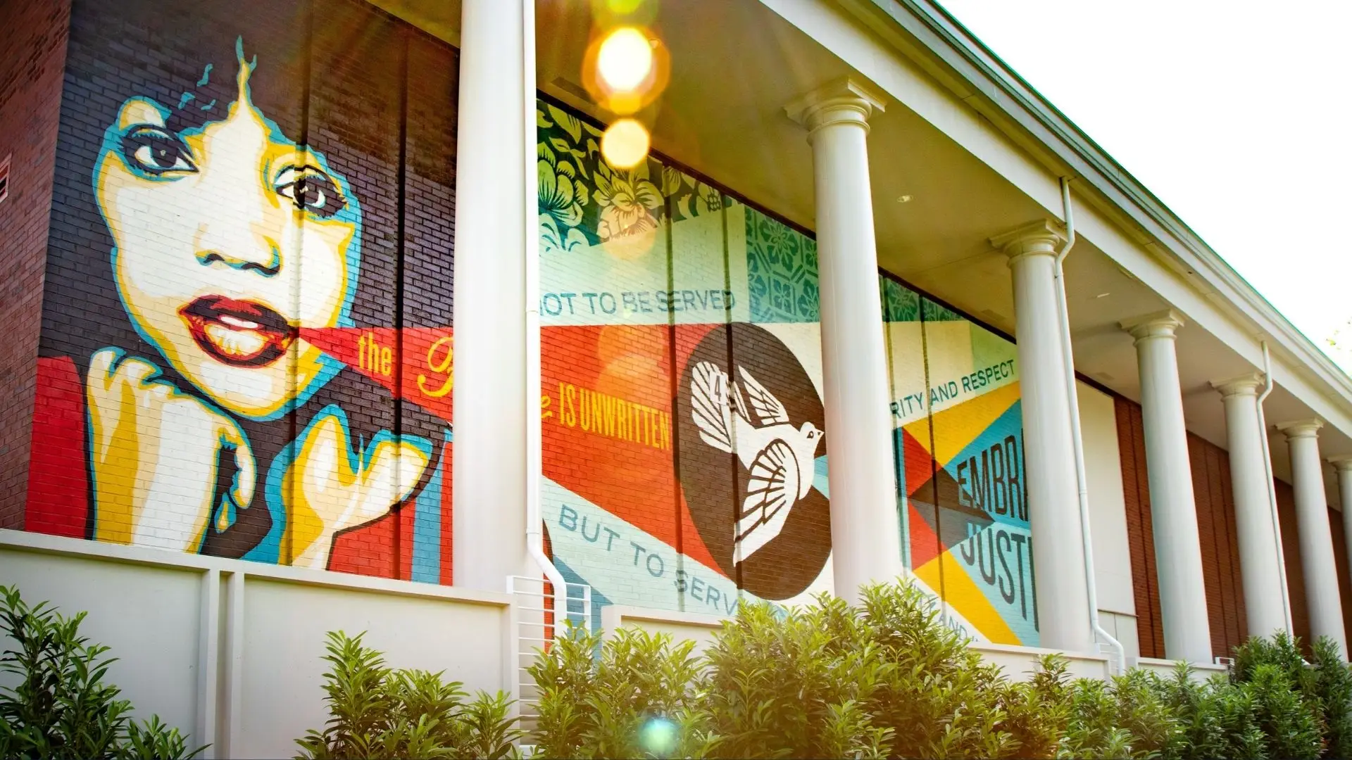 Shepard Fairey’s connection to the university runs deep, as his mother Charlotte Fairey and sister McRae (Fairey) Oyeossi are Queen’s alums.“Art is often an underutilized and underappreciated tool of civic engagement and activism,” Fairey said after completing the Charlotte-area murals in late October.
